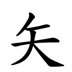 В современном языке иероглиф используется в значениях: «стрела, вектор», «клясться, присягать». В переносном смысле иероглиф имеет значения: «испражнения, экскременты, кал».