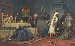 М. В. Нестеров. Шутовской кафтан. Боярин Дружина Андреевич Морозов перед Иваном Грозным. 1885 год