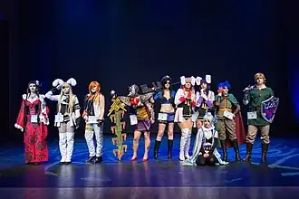 Коспле́й (м., скл., яп. コスプレ косупурэ, сокращение от англ. costume play — «костюмированная игра»[1]) — перевоплощение в различные роли, заключающееся в переодевании в костюмы и передаче характера, пластики тела и мимики персонажей компьютерных игр, кинематографа, литературы, комиксов, аниме и манги. Как правило, это увлечение включает в себя изготовление костюма и элементов атрибутики выбранного персонажа. Имеет некоторую связь с ролевым движением (отличие в том, что косплей не предполагает развития сюжета и характера персонажа, а концентрируется на характерных особенностях, описанных в источнике), а также с исторической реконструкцией (требует детального воссоздания исторического прототипа).