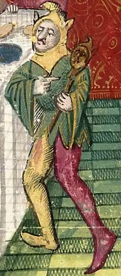 Но особенно нетерпимо Средневековье было настроено к полосатым тканям. Подлинная причина подобной антипатии до конца неясна, более того, она была уже не совсем понятна даже для людей той эпохи. Для объяснения привлекалась, конечно же, Библия, где заповедь «не носить разные ткани» (в современную эпоху толкующаяся как запрет на соединение в одном платье растительного и животного материала) в те времени понимался как запрет рисунка из разноцветных полос. Мишель Пастуро, посвятивший специальное исследование истории полосатых тканей, выдвигает для этого запрета ещё одно оригинальное объяснение. Зрительное восприятие средневекового европейца привычно было к чтению гербов, которое начиналось с фона, и далее поднималось вверх по фигурам, от самой крупной к самой мелкой детали. Полосатые ткани невозможно было рассмотреть подобным образом, они вызывали замешательство и мельтешение в глазах. Так это или нет до конца неизвестно, однако следует сказать, что в Средневековье существовала стойкая традиция изображать в полосатой одежде падших ангелов, врагов христианства и прочих столь же малоприятных персонажей. Полосатое платье было в обиходе исключительно среди шутов, подчеркивавших таких образом свою маргинальность, вызов, бросаемый «благонамеренному» обществу. Для того, чтобы сделать этот вызов ещё более шокирующим, шуты зачастую облачались в зелёно-жёлтую гамму, вплоть до конца XVI века ассоциировавшуюся в глазах обывателя исключительно с помешательством. И наконец, графиня Маго Артуа своим указом от 1328 года прямо запретила ношение полосатых тканей[19].