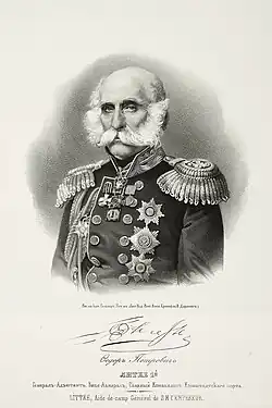 ![]() Портрет графа Ф. П. Литке, президента Императорской Академии наук. И. Н. Крамской, 1871 | |