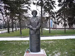 Недалеко от Дворца спорта установлен памятник Анне Ильиничне Синилкиной, в течение длительного времени занимавшей должности директора Дворца спорта, председателя и почётного председателя Президиума Федерации фигурного катания на коньках СССР[11].