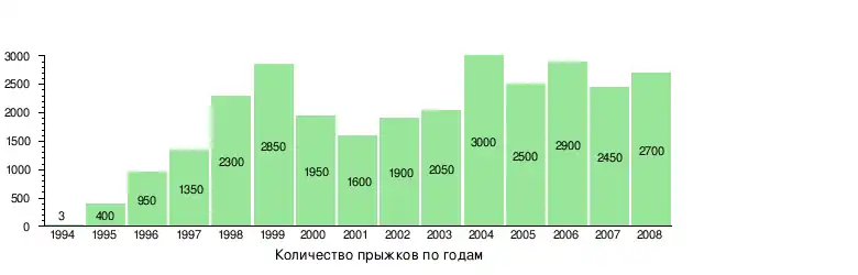 С 1994 по 2009 год осуществлено около 30 тысяч прыжков. Зафиксировано примерно 100 инцидентов и 9 летальных исходов. Около 30 раз для эвакуации пострадавших вызывался вертолёт спасателей.[9]