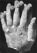Фантом «Джон Кинг», по описанию Флоренс Мариатт, на глазах у всех держал «грифельную доску так, что обе руки его были видимы; затем одна рука стала уменьшаться до размеров ручки детской куклы»[28]. Профессор Ботацци описывал эпизод, когда он сжал в своей руке материализованную кисть, казалось, ничем не отличавшуюся от обычной человеческой, а когда сдавил её сильнее, та исчезла, но «не стала меньше — просто растаяла, растворившись»[53].
