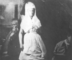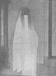 «Бьен Боа», «материализовавшийся» по пояс. Белый («эктоплазмический», как утверждалось) «рукав» соединяет недооформленную фигуру с телом медиума Евы К., находящейся справа. Снимок Ш. Рише, 1919 год.