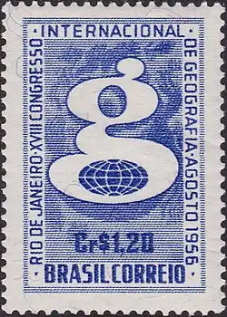 Почтовая марка Бразилии 1956 года, посвящённая XVIII Международному географическому конгрессу в Рио-де-Жанейро