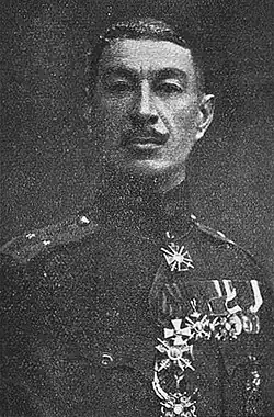 За то, что 23 июля 1915 года в бою у дер. Верещин, командуя сначала одним, а затем двумя батальонами и получив приказание поддержать батальон того же полка, фланг которого был обнажен, лично повел роты своего батальона вперед, под убийственным огнем противника, отбил наступление и восстановил положение, а затем, будучи обойден, с обоих флангов, удержал свою позицию и вынудил противника отойти, чем предотвратил потерю всей позиции. Будучи контужен, остался во главе своих частей.