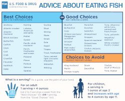 «Преимущества умеренного потребления рыбы (1-2 порции в неделю) перевешивают риски для взрослых и, за исключением нескольких отдельных видов рыб, для женщин детородного возраста. Отказ от потребления рыбы из-за неуверенности в отношении рисков и преимуществ может привести к тысячам избыточных смертей от ВПС (врождённых пороков сердца) ежегодно и нарушениям развития нервной системы у детей»[66].
