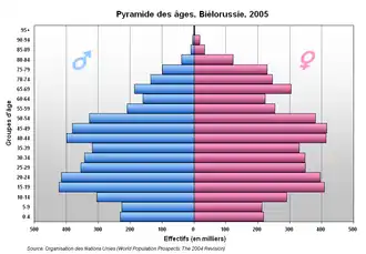 Населе́ние Беларуси — совокупность людей, проживающих на территории Беларуси. По оценке на 1 января 2025 года, население республики составило около 9 109 280 .[1][2]человек. С начала 2015 года по январь 2018 года прирост населения составил 10,7 тысяч человек. Естественная убыль населения в январе — сентябре 2014 года по сравнению с соответствующим периодом 2013 года уменьшилась на 75,3 % и составила 1545 человек[3]. Миграционный прирост в январе — сентябре 2014 года составил 8474 человека[3].