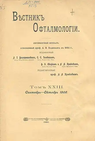 - ↑ Вестник офтальмологии. Медиасфера. Дата обращения: 23 июля 2017. Архивировано 16 октября 2017 года.