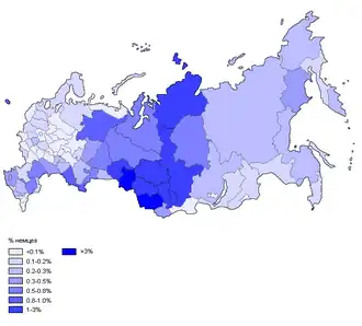 Доля российских немцев по регионам РФ по данным переписи 2002 года