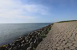 Четверть территории страны лежит ниже уровня моря на 5—7 м. Седьмая часть суши находится на высоте всего 1 м над уровнем моря, и только 1⁄50 часть территории страны — выше отметки 50 м[14]. Со времён Римской империи нидерландцы отвоёвывают землю у моря. Первые польдеры появились ещё в XIII веке, и с тех пор вдоль побережья были осушены значительные площади. Но одновременно история Нидерландов — это история непрекращающейся борьбы людей с морем. Правда, сама же природа пришла здесь на помощь человеку, защитив часть побережья довольно широким поясом песчаных дюн. Но этот пояс был несплошной, и к тому же песок развеивался ветрами. Тогда люди стали укреплять дюны различными посадками, а в местах разрывов сооружать земляные дамбы и плотины. Такие же дамбы и плотины они начали возводить на реках. Отсюда происходят и многочисленные географические названия с окончанием «дам» (дамба, плотина), например Амстердам («плотина на реке Амстел») или Роттердам («плотина на реке Ротте»).