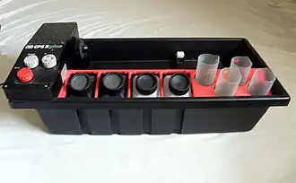 Необходимость точного соблюдения температурного режима и перемешивания растворов в цветных процессах C-41 и E-6 требует частичной автоматизации, возможной в настольных барабанных системах, например Jobo или Kindermann[17]. Такие устройства состоят из светонепроницаемых барабанов со спиралями, располагающихся горизонтально в специальном поддоне с электроподогревом. Лежащие барабаны могут свободно вращаться на опорных роликах при помощи электропривода, а температура растворов поддерживается автоматически[18][19]. При этом, конструкция бачков допускает обработку как рулонных, так и листовых фотоматериалов, в том числе фотобумаг[20].