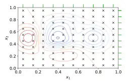 Например, типичный классификатор с мягким зазором на основе метода опорных векторов (МОВ), оснащённый ядерной радиально-базисной функцией имеет по меньшей мере два гиперпараметра, которые необходимо настроить для хорошей производительности на недоступных данных — константа C регуляризации и гиперпараметр ядра γ. Оба параметра являются непрерывными, так что для поиска по решётке выбирают конечный набор «приемлемых» значений, скажем