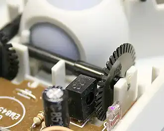 Воспроизведение звука в кино с помощью преобразования оптического сигнала в электрический с звуковой дорожки кинопленки получило распространение в 1920-х годах. Звуковая дорожка кинопленки находилась между источником света и фотоэлементом. Изменение оптической плотности при движении звуковой дорожки вызывало изменение освещенности фотоэлемента и на его выходе возникали электрические колебания звуковой частоты.[7][8]