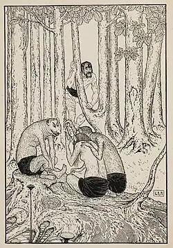 - Человек-леопард — бунтарь, нарушающий законы зверолюдей: он ходил на четвереньках, лакал воду из ручья, убил кролика.