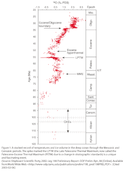 - ↑ Zachos J., Pagani M., Sloan L., Thomas E., Billups K. Trends, rhythms, and aberrations in global climate 65 Ma to present (англ.) // Science. — 2001. — Vol. 292, no. 5517. — P. 686—693. — doi:10.1126/science.1059412. — PMID 11326091.