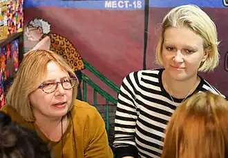 Ольга Дробот и Мария Парр на 21-й Международной ярмарке интеллектуальной литературы Non/fiction в Гостином дворе.