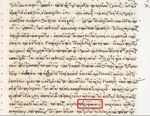 Созомен. «Церковная история». Книга шестая. Глава 11. Исповедание МакедонианЕвстафия, Сильвана и Феофила, представленное римскому епископу Ливерию, в котором среди других еретиков упоминаются патрипассиане. Греческая рукопись 1524 года. Британская библиотека.