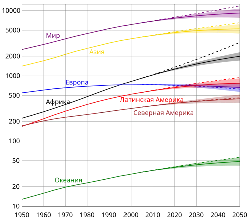 В июле 2015 г. ООН представила ежегодный доклад о мировой демографической ситуации и перспективах её развития. Его авторы пришли к выводу, что население Земли продолжает расти, причём почти половина прироста населения приходится на африканские страны. По темпам роста населения Китай уступил Индии, а число жителей постсоветских стран будет сокращаться[26]. Согласно прогнозам, в предстоящие десятилетия существенно увеличится численность населения Африки и Азии.