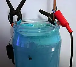 Медь представляет собой довольно мягкий металл красно-жёлтого цвета[10]. В электрохимическом ряду напряжений металлов она стоит правее водорода, поэтому растворяется только в кислотах-окислителяхазотной кислоте любой концентрации и в концентрированной серной кислоте):