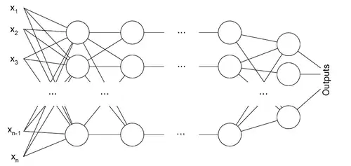 Это перцептрон, в котором присутствуют дополнительные слои A-элементов. Его анализ провёл Розенблатт в третьей части своей книги.