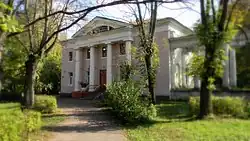 Главный корпус усадьбы[12], предположительно, был построен в период с 1783 по 1786 гг. По версии историков, автором проекта был известный архитектор К. И. Бланк. Здание относилось к стилю раннего классицизма. Первоначально оно было двухэтажным, с подвалом, венчалось мезонином и куполом. Стены были украшены равномерно расположенными пилястрами коринфского ордера. Фасады имели центральные ризалиты, на которых пилястры венчались фронтонами и образовывали портики. Внутренняя планировка также была симметричной, на главной оси находились двусветный зал с каннелированными колоннами и столовая. В интерьерах парадных комнат были медальоны с портретами рода Голицыных, вазы, мраморные камины с бюстами, украшенные изразцами печи, зеркала. Перекрытия наземных этажей были балочными, подвала — сводчатыми. После пожара дом восстановлен уже трёхэтажным, с новой планировкой, декор XVIII века уцелел лишь фрагментами. В 1978 году была начата реставрация, не доведённая до конца[9].