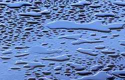 - На многих поверхностях, именуемых несмачиваемыми (гидрофобными), вода (или другая жидкость) собирается в капли.