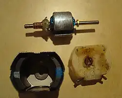 Постоянные магниты индуктора (в корпусе) электродвигателя постоянного тока