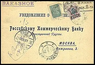 Уведомление о вручении СССР, франкированное марками