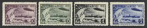 Серия памятных авиапочтовых марок СССР (1931): арктический рейс ледокола «Малыгин», встреча ледокола с дирижаблем ЛЦ-127 (ЦФА [АО «Марка»] 383—386)