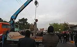 Смертная казнь в Иране активно применяется. По данным Amnesty International, в 2015 году было казнено не менее 977 человек, в том числе не менее 16 женщин и не менее 4 несовершеннолетних[9]. Смертная казнь в Исламской Республике Иран может быть назначена за следующие преступления: убийство, изнасилование, вооружённое ограбление, ересь, богохульство, торговля наркотиками, содомия, проституция, супружеская измена, государственная измена и шпионаж, распространение порнографии[10]. Повешение с помощью автокрана используется при многих видах правонарушений и как единственный вид казни при насилии, убийстве и сексуальных домогательствах к детям. В 2012 международные правозащитные организации зафиксировали 587 казней в Иране[11]. По данным HRANA, 63 % были казнены за контрабанду наркотиков, 10 % — обвинены в совершении убийства, 6 % — в совершении агрессии, 3 % — информации нет. Большинство казней были приведены в исполнение в Тегеране (16 %), Симнане и Фарсе (9 %). 59 человек, приговоренных к смерти из-за убийства или агрессии, были казнены публично. Однако власти Ирана обнародовали мировой общественности лишь информацию о 54 % приведённых в исполнение казней, об остальных 46 % информацию в своих отчётах опубликовали различные организации по правам человека. Несмотря на это, официальный Тегеран заявил, что в прошлом году в иранских тюрьмах не было приведено в исполнение ни одной тайной казни[12].