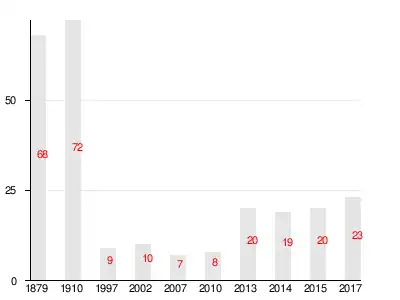 | 1997[13] | 2002[14] | 2007[15] | 2010[16] | 2013[17] | 2014[18] | 2017[1] |