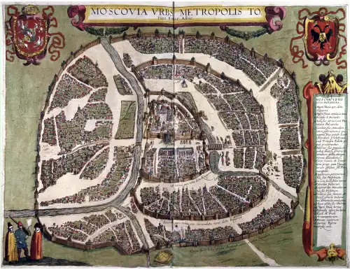 Сигизмундов чертёж Московии, выполненный поляками, гравированный в 1610 году. Последний по времени план Москвы, составленный до разрушений 1612 года. План развёрнут на 90 градусов: север — справа, сверху — запад, под № 19 — Литейный дом.