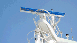 Антенна для коммерческих морских радаров. Вращающаяся антенна излучает вертикальный веерообразный луч.