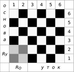 Также, раппорт — композиционный тип орнамента, элементы которого многократно повторяются, при этом орнамент строится не вдоль одной оси, а по нескольким: например, по горизонтали, вертикали и двум диагональным осям[4].