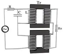 - При реализации резонанса токов на трансформаторах, первичная и вторичная обмотки должны располагаться на разных кернах на магнитопроводе, иначе электромагнитные наводки от вторичной обмотки будут мешать резонансу. Поэтому годятся трансформаторы с П-образным или Ш-образным сердечником. В противном случае обмотки тщательно экранируют друг от друга фольгой.