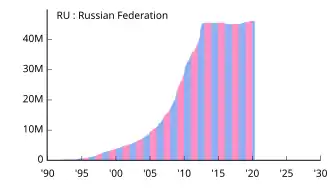В 2021 году ВГТРК, сообщая о «27-летии Рунета»[44], указала, что к этому времени «население Рунета» составило «более трёх четвертей россиян» — более 78 % жителей России, или 95 с лишним миллионов человек.