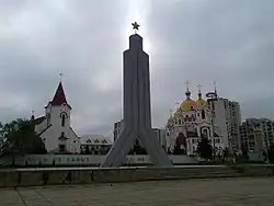 В 1975 году был сооружён Мемориал воинской славы (архитектор В. П. Меднек). Два спаренных железобетонных пилона облицованы белым мрамором, у подножия на 12 гранитных плитах высечены имена освободителей города и района (отреставрирован в 2010 году).