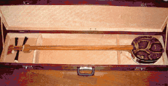 Традиционно три струны делались из шёлка; в настоящее время обычно делаются из обвитой нейлоном стали[2].