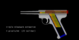 Работа свободного затвора на примере пистолета.