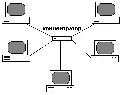В сети, построенной по топологии типа «звезда», каждая рабочая станция подсоединяется кабелем (витой парой) к концентратору, или хабу (англ. hub). Концентратор обеспечивает параллельное соединение ПК и, таким образом, все компьютеры, подключенные к сети, могут общаться друг с другом.