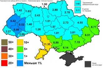 В итоге на внеочередных выборах в Верховную Раду 2014 партия «Сильная Украина» заняла девятое место по количеству голосов избирателей (491471 голос - 3,11%) и, не преодолев 5-процентного барьера, не прошла в парламент.[24]