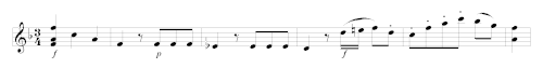 - Menuetto and Trio, 3/4 ― тема менуэта была сочинена Леопольдом Моцартом[3]