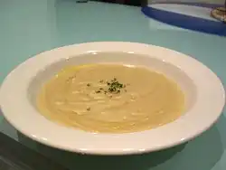 Крем Нинон Франция Базируется на густом бульоне с плотным пюре из зелёного гороха с шампанским.