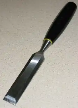 Для ударной версии стамески на рукояти также предусмотрена металлическая защита от деформации. При резании на стамеску нажимают рукой и лишь иногда слегка ударяют киянкой или молотком по торцу рукояти стамески.