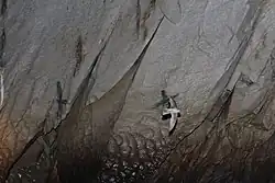 Кардинально отличаются гнёзда представителей подсемейства Cypseloidinae и, возможно, колючехвостых стрижей (Hirundapus), которые не используют слюну при строительстве гнезда. Ошейниковый американский стриж, белоголовый американский стриж, большой колючехвост (Hirundapus giganteus) и колючехвостый стриж, как и, возможно, менее изученные виды колючехвостых стрижей, обычно выскребают гнездо[40]. Американские стрижи прикрепляют гнёзда в скалах у воды, и часто, чтобы добраться до ниши с гнездом, они должны пролететь под водопад сквозь толщу воды[46].