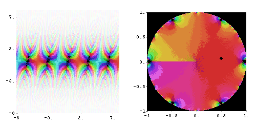 Тета-функция с различными номами. Чёрная точка на правом рисунке показывает, как меняется q при изменении Тета-функция с различными номами. Чёрная точка на правом рисунке показывает, как меняется q при изменении