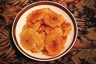 Тостонес (исп. Tostones, от испанского глагола tostar, что означает «тост») — дважды обжаренные ломтики бананов сорта Плантан, напоминающие лепёшки или чипсы, обычно встречающиеся в латиноамериканской и карибской кухне (см. Карибская кухня). Наиболее известны как tostones (Пуэрто-Рико, Ямайка, Никарагуа, Куба, Гондурас и Венесуэла), их также называют tachinos или chatinos (Куба), plátano frito или frito verde (Доминиканская Республика), bananes pesées (Гаити), patacones (Панама, Венесуэла, Колумбия, Коста-Рика, Перу и Эквадор) и, иногда, patacón pisao в Колумбии[1][2].