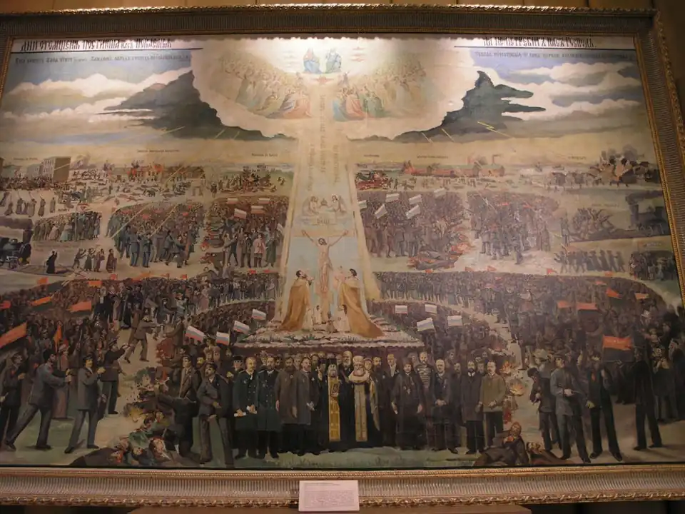 Революция 1905—1907 годов вызвала существенную реакцию со стороны монархически настроенных групп, получивших известность как черносотенное движение[4]. Крайне правые организации черносотенцев действовали в 1905—1917 годах. Они основывались на идеях русского национализма и, использовали лозунги защиты монархии и православия. К их числу принадлежали Союз русского народа, Русский народный союз имени Михаила Архангела и др. Лидерами и идеологами черносотенцев были Владимир Грингмут, Александр Дубровин, Павел Крушеван, Николай Марков, В. М. Пуришкевич[5]. Черносотенцы включали в себя реакционные, контрреволюционные и антисемитские группы, которые с потворства властей осуществляли нападения на революционные группы и совершали еврейские погромы[6][7]. Социальную основу этих организаций составляли разнородные элементы: помещики, представители духовенства, крупной и мелкой городской буржуазии, купцы, крестьяне, рабочие, мещане, ремесленники, казаки, полицейские чины, выступавшие за сохранение незыблемости самодержавия на основании уваровской формулы «Православие, самодержавие, народность»[6]. После Февральской революции 1917 года организации черносотенцев попали под запрет[5].